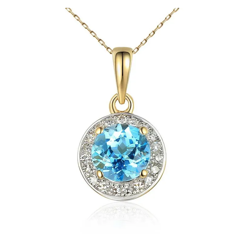 ZŁOTA 585 ZAWIESZKA TOPAZ Z DIAMENTAMI