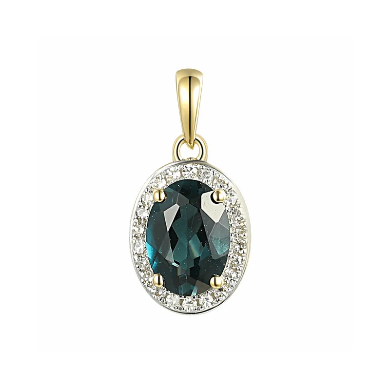 Złota 585 Zawieszka London Blue Topaz i Diamenty Elegancki Prezent