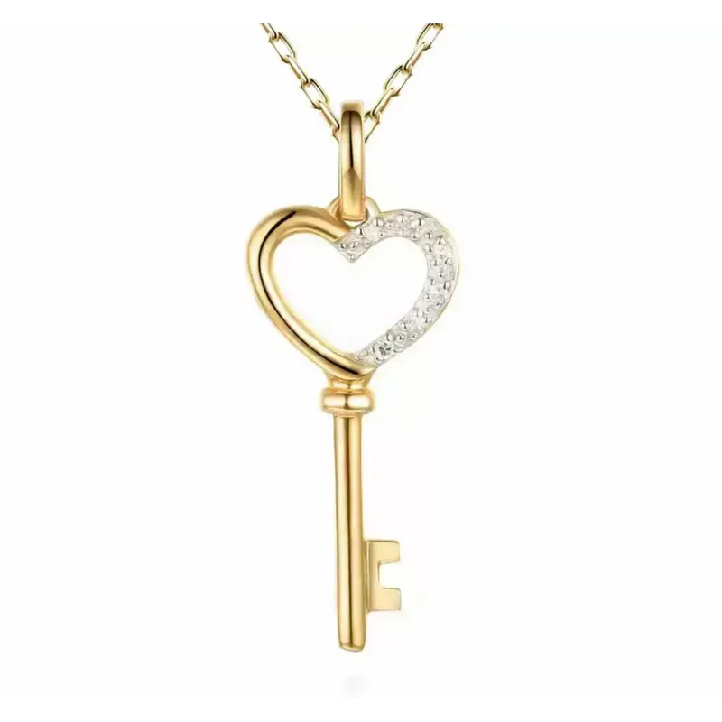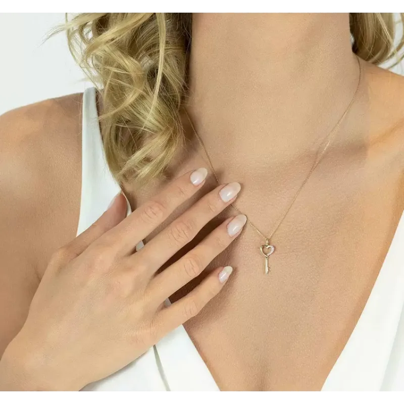 Złota 585 Zawieszka Kluczyk Serduszko z Diamentami