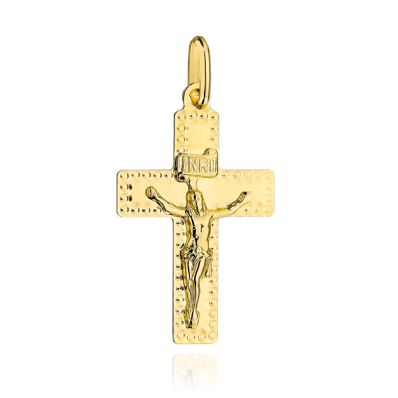 Złoty Krzyżyk 585 Ozdobny z Jezusem Prezent na Komunię Chrzest