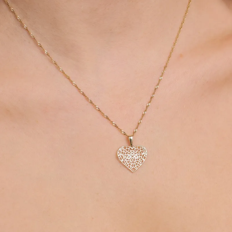 Złota Zawieszka Duże Ażurowe Serce